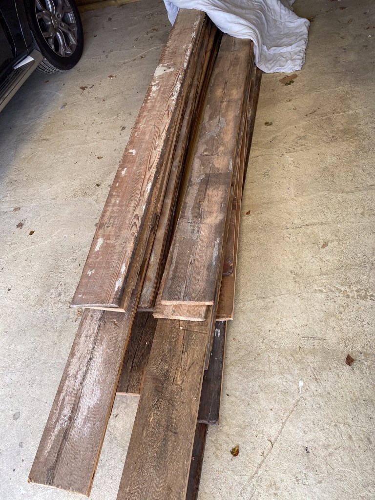 I was excited to make a real difference in our kitchen/dining/living room. When we moved in, the space was ‘clean’. Some might call it clinical. We really needed to soften the room so, in the living area, we decided to clad the wall with reclaimed antique pine boards. I searched online for the right wood to give the look I was after. Eventually I found just the thing. The boards were in Leeds and, after a nail-biting wait, they arrived a few weeks later. I now realise anything with the tag ‘reclaimed’ generates a large premium price wise.