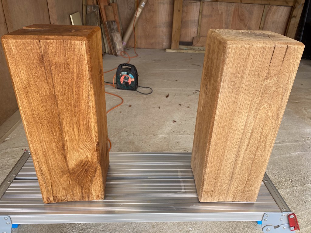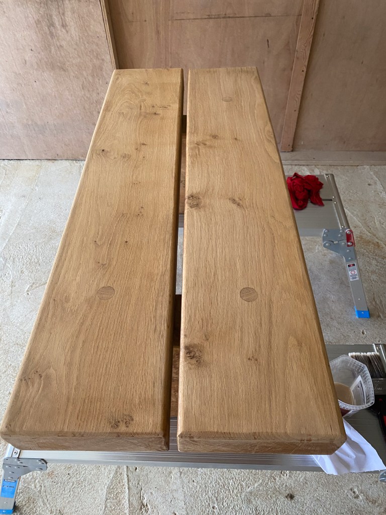 As I had some oil left over and the table was a success, I performed the same process on our two Oak drinks stands. Somehow, breathing new life into old furniture gives me a happy feeling!