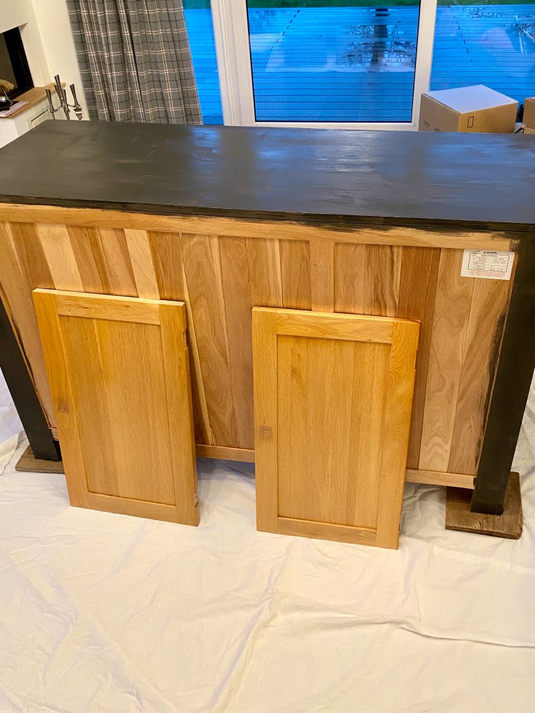 The paint itself, once dry, easily scratches though so to prevent this, I applied the clear wax (also Annie Sloan, £15) to give it a dull sheen and hard wearing coating. I can vouch for it’s finish, look and style. After removing the previous handles on the doors and drawers and replacing them with some iron knobs I found on Etsy (£25) , it looked brilliant.