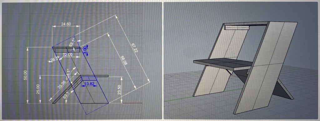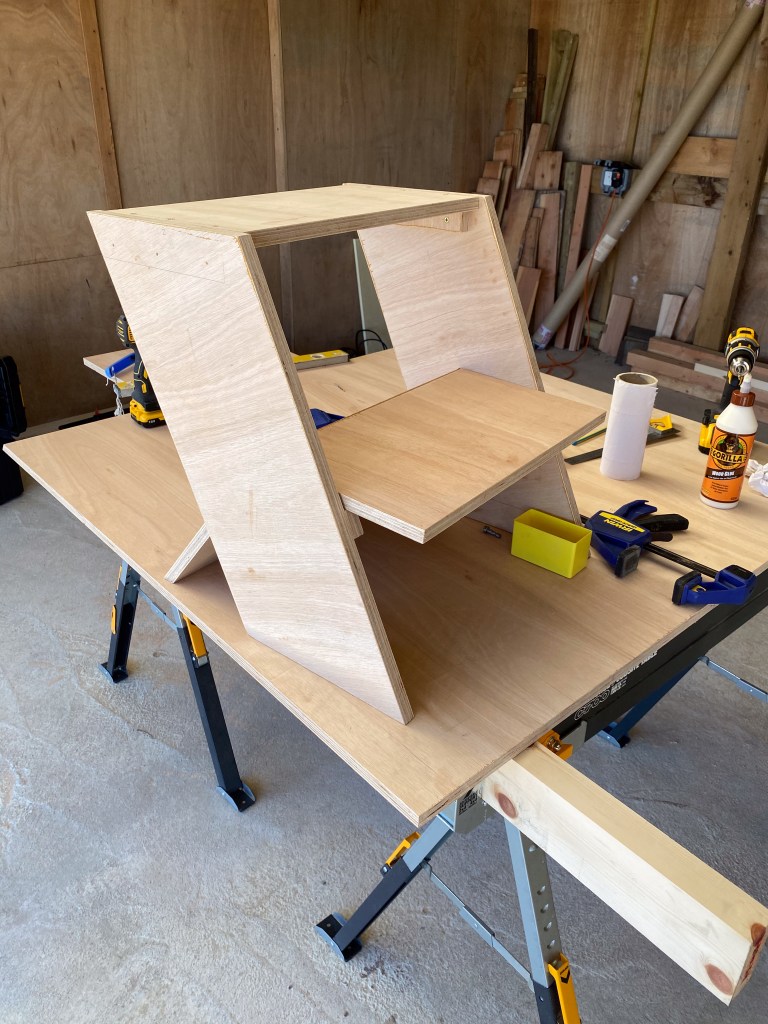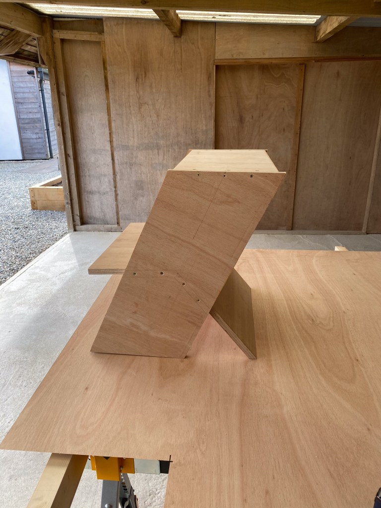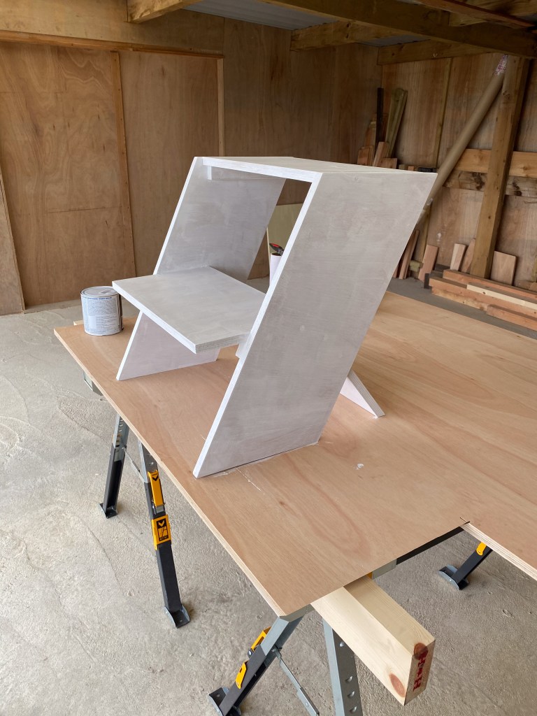 It’s a clever design and looks pretty striking. The question was, could I do it any justice? I spent a few hours measuring and re-measuring and then cutting out the various pieces. I’ll admit to trashing a bit of wood here as I learned angles and clean cuts. I’ll also admit to frustration. There’s nothing more infuriating than things that should fit, that somehow just don’t! I walked away to calm down a few times but in the end, I got there. I undercoated it and then painted it with two coats of dulux paint.