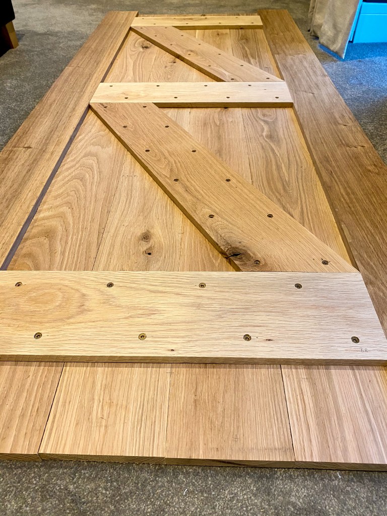 I’d used Gorilla Wood Glue for the glue-up so within a couple of days, it was all fully dry and movable. With the front side of the door complete and (to me), gorgeous, all that remained was to strengthen it all. It needed it too as the whole thing weighed a ton!