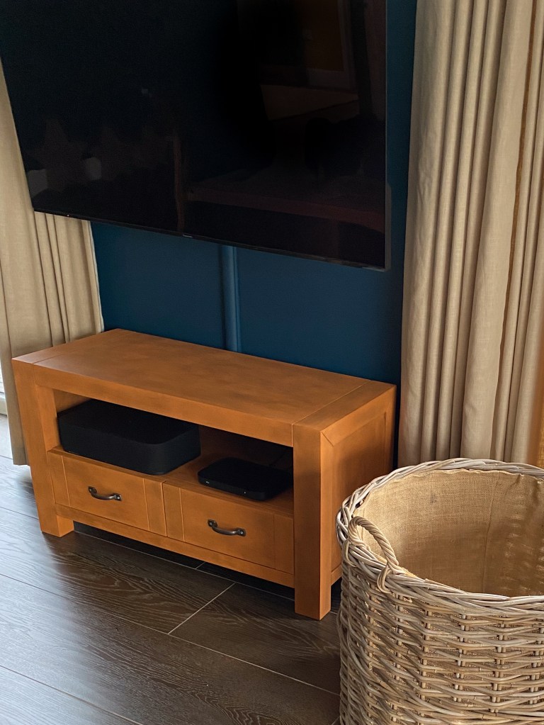 With the success of the chalk paint I used on the sideboard I wanted to re-purpose our oak TV unit for the living room. This time I decided to be a little bolder with my colour choice rather than use my standard black/graphite. So I chose an earthy orange again by Annie Sloan.