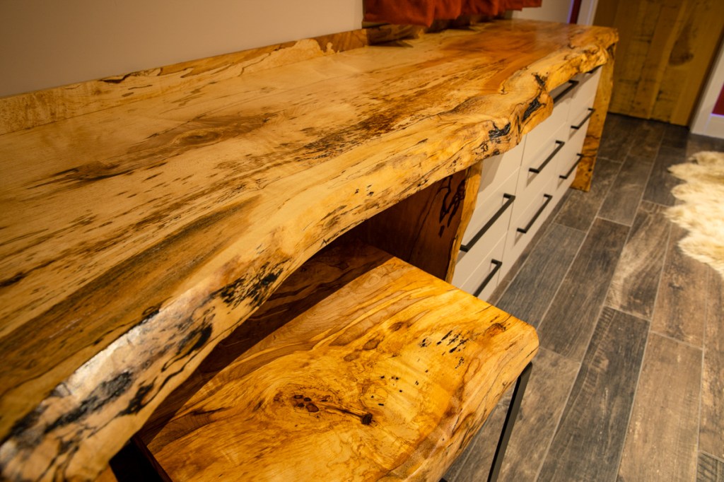 When the time came, we cut the long top to width but left the live edge in tact. We then cut the other piece into three for the sides, again leaving the live edge.