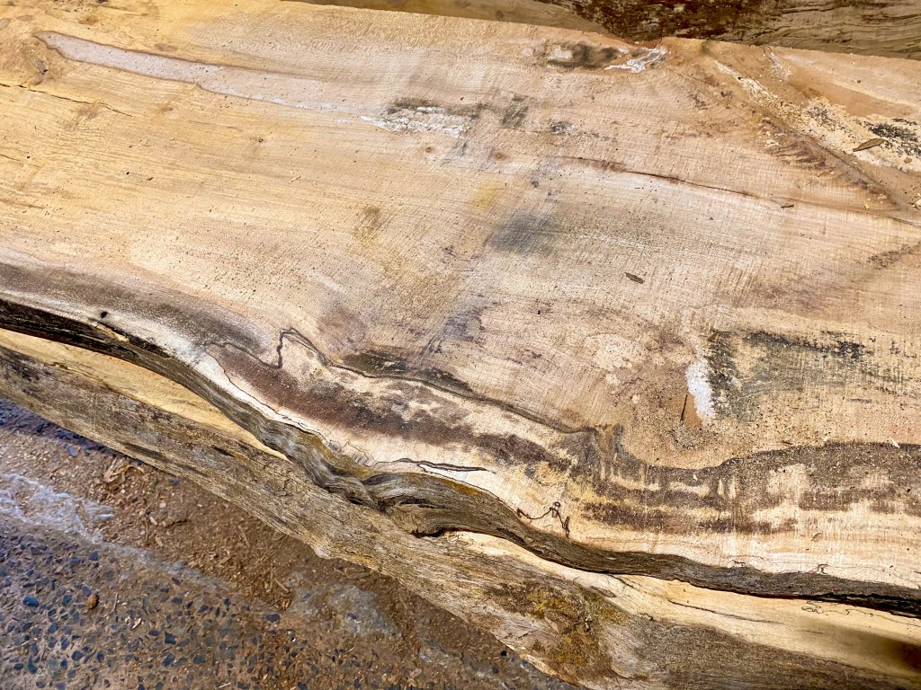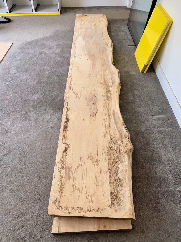 The sawmill suggested some Oak or Beech but I was after something a bit different. With a glint in his eye, he lead me to a big stack of slabs and said, “well, this is now ready and is a bit special.” It was Spalted Sycamore, taken from a massive tree that had been blown over in a storm a few years ago and very local. Taking one look at the top slab and I knew this was it. This was perfect. We chose two massive boards there and then and paid a deposit. They’d be delivered in a few weeks which was fine as we were by no means ready to build the cabinets. They arrived perfect and beautiful and we stored them in the bedroom so they could acclimatise for a couple of months.