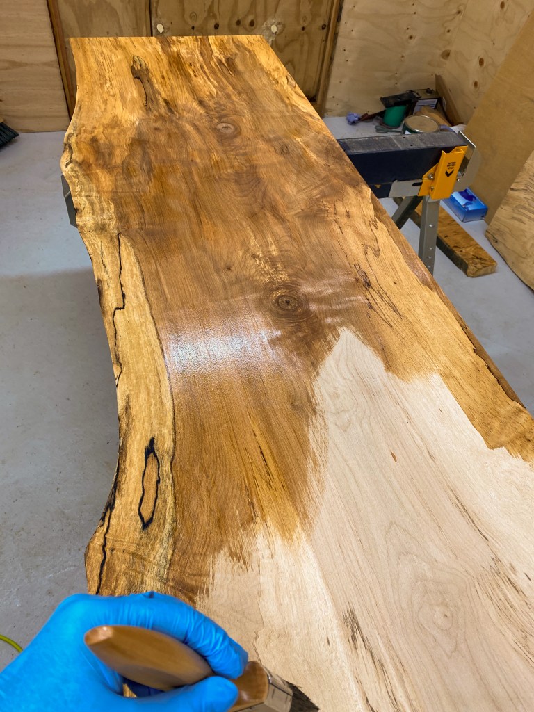 To oil each side 5 times including drying time was a long and slow process but the way it brought it up the beautiful spalt lines and colour was so amazing to see, it was an enjoyable job.