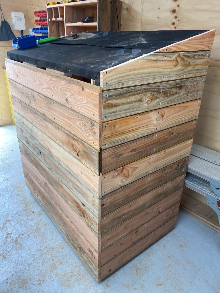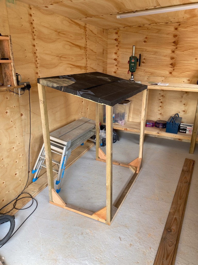 As it turned out, it was a bit more complicated than it sounds. The materials were all left overs from other projects. The membrane and cladding from the workshop build and the frame from the workshop bench build. The only new purchase was for the casters to wheel it around and the handles to grab and maneuver the whole thing.