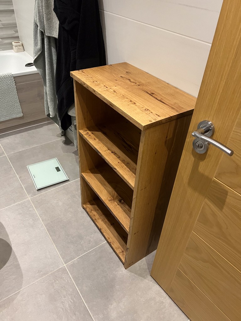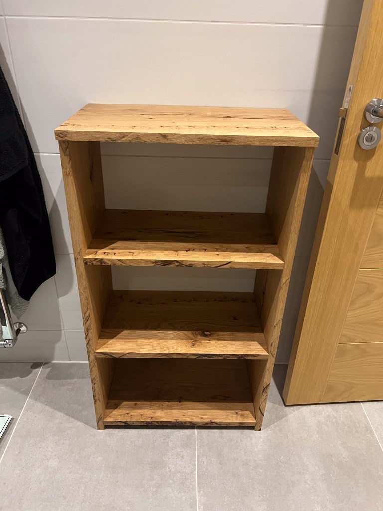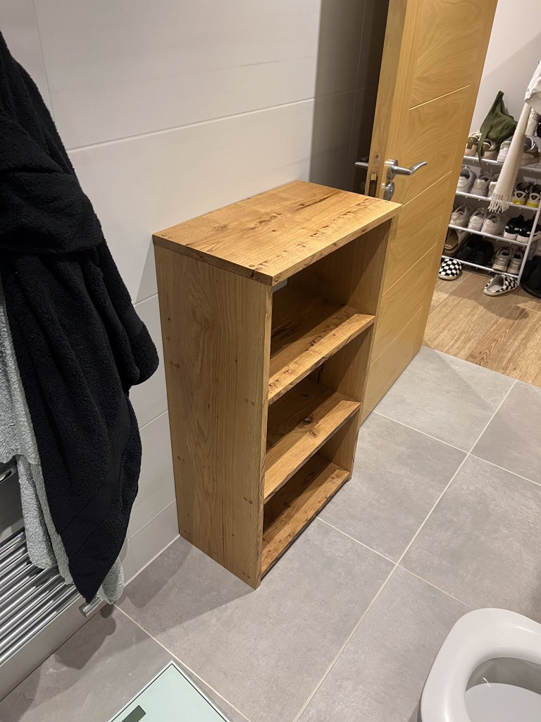 We’d more or less finished our massive garden landscaping project and I was left kicking my heels for a bit over Christmas and the New Year. I mistakenly told my daughter I was needing a new project. She said she was looking for some bathroom shelves to put all her cosmetics in.