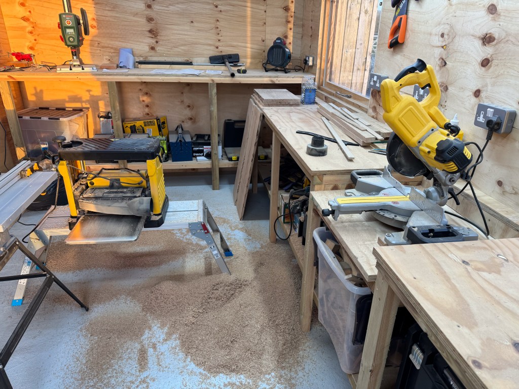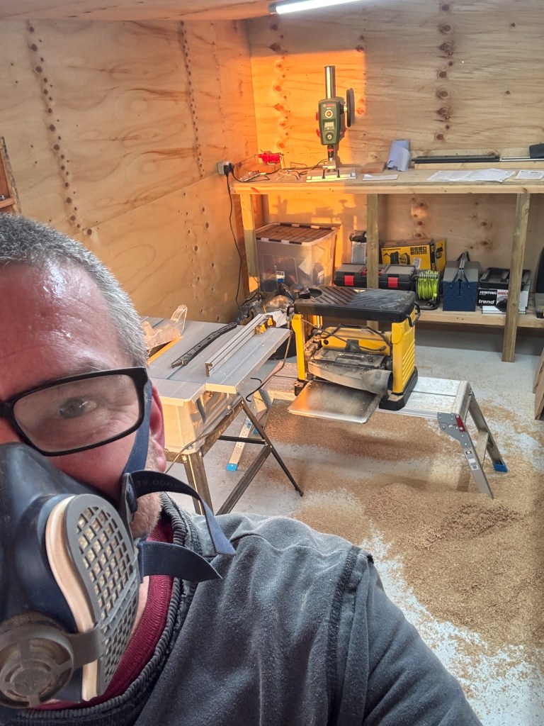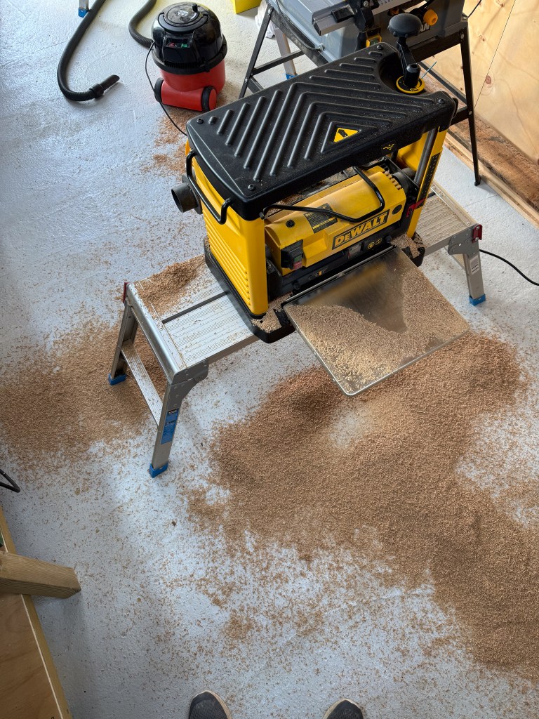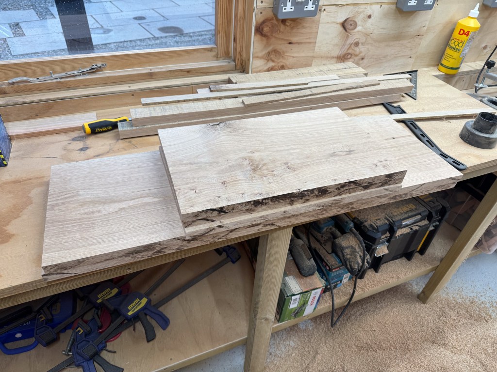 I visited Winkleigh Timber again and ordered the boards I’d need. I didn’t ask them to plane the boards as I wasn’t sure at that stage how thick I needed them. I’d purchased a Dewalt planer/thicknesser and enjoyed using it so this was another perfect excuse. I chose to pay a bit more for wider boards so I didn’t have to join them together and they’d look cleaner when complete. I also ordered some oak dowel rods online which surprisingly turned out to be inexpensive.