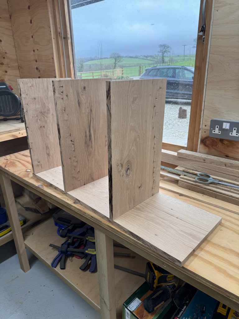 After a few chats I managed to get to the bottom of her requirements and we drew up a plan. They were to be freestanding and fairly tall so she could place baskets on each of the shelves and bottles on the top. She decided Oak would be perfect and we agreed the dimensions.