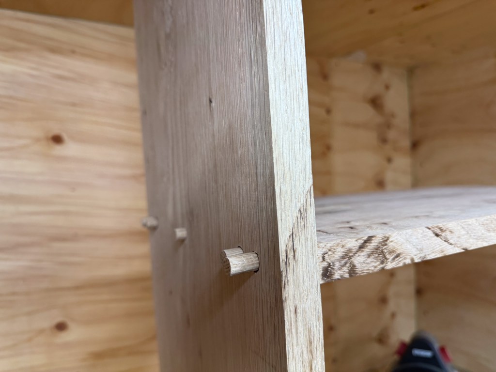 The result is that after a bit of pain, some literal, I’d got the unit together and if I may say so myself, it looks gorgeous. Yes there are a few dowels that have the odd gap around them but overall, it’s a very solid and quality piece. My last tool purchase for this job was a small Japanese saw. I’m not sure what they’re called but they’re very thin and very flexible. I used this to cut the dowels flush to the surface, a brilliant and very satisfying tool.
