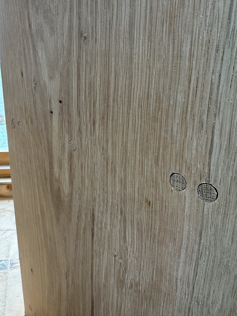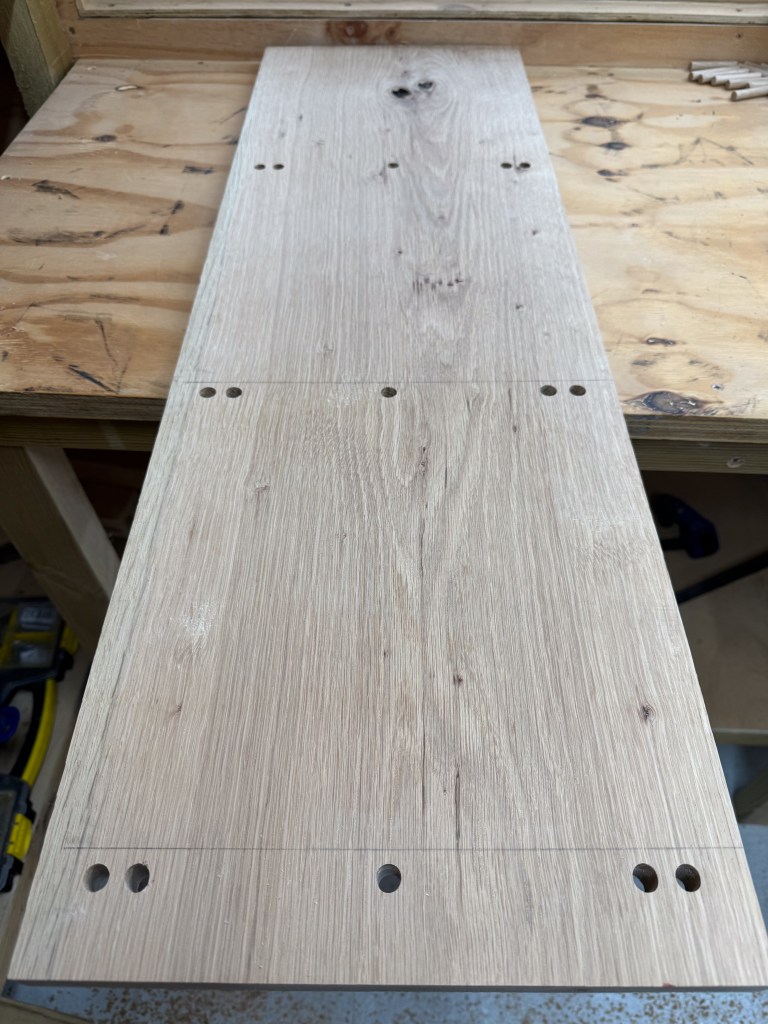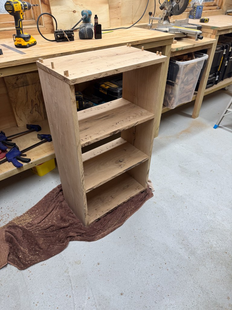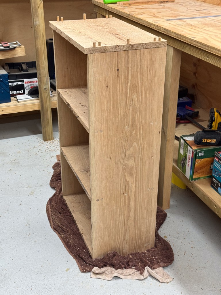 I’m not going to pretend that this all went swimmingly and there were no issues. In fact, it was tougher than I’d imagined. Aligning dowel holes was difficult and required careful precision (not my forte). By far the hardest part was constructing the unit. Those dowels are tight with a capital T! I tried gentle persuasion and that didn’t work. I gave up with ‘dry fits’ and just glued on first attempt as getting them apart afterwards would have proved nigh on impossible. Maybe I shouldn’t have used oak dowels as they’re hard and unforgiving? Maybe my drill bit was fractionally too small?
